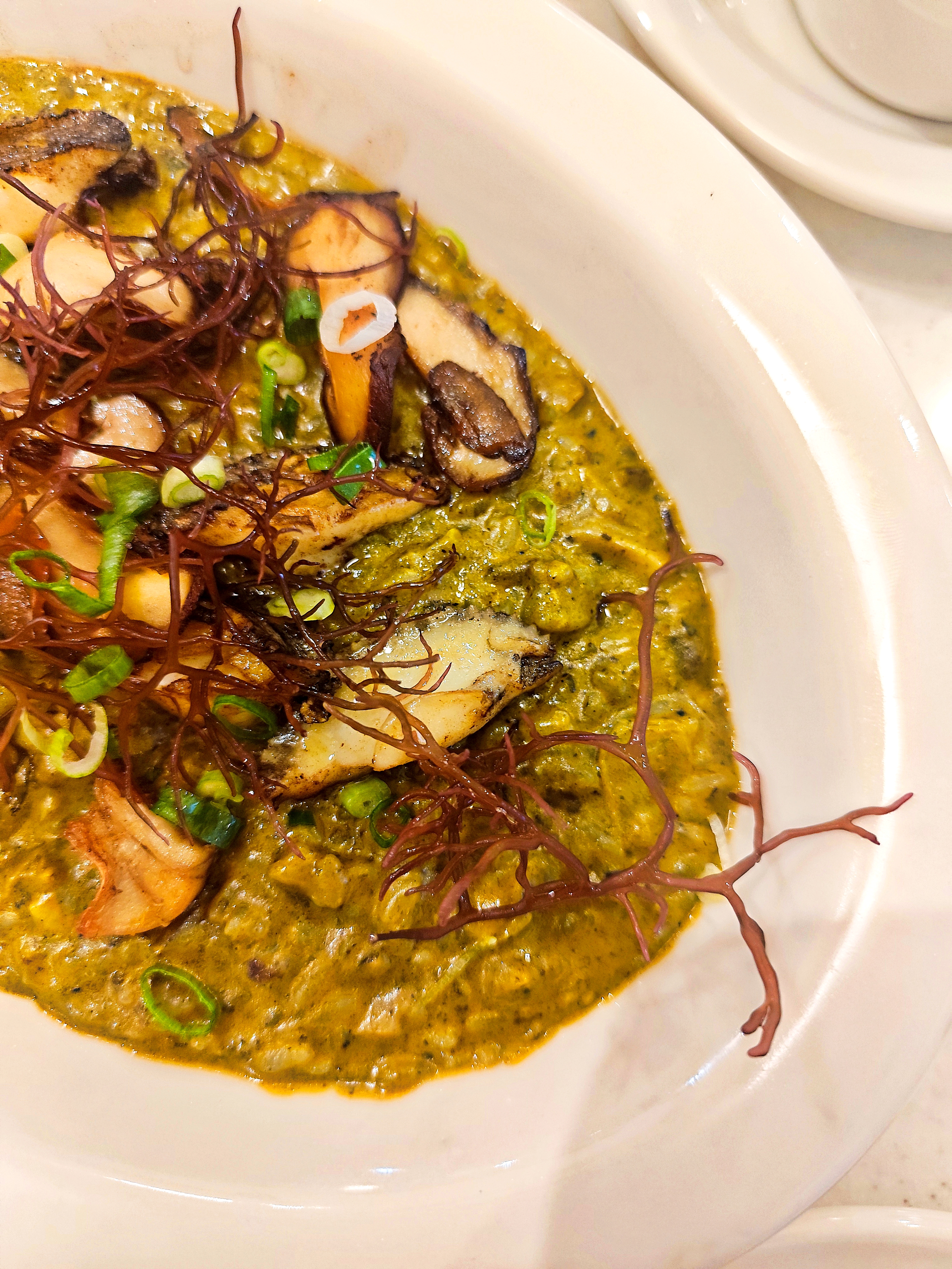 완도산 전복, 전복 내장 소스로 깊은 풍미를 담고, 들기름의 고소한 향이 조화롭게 어우러진 리조또입니다