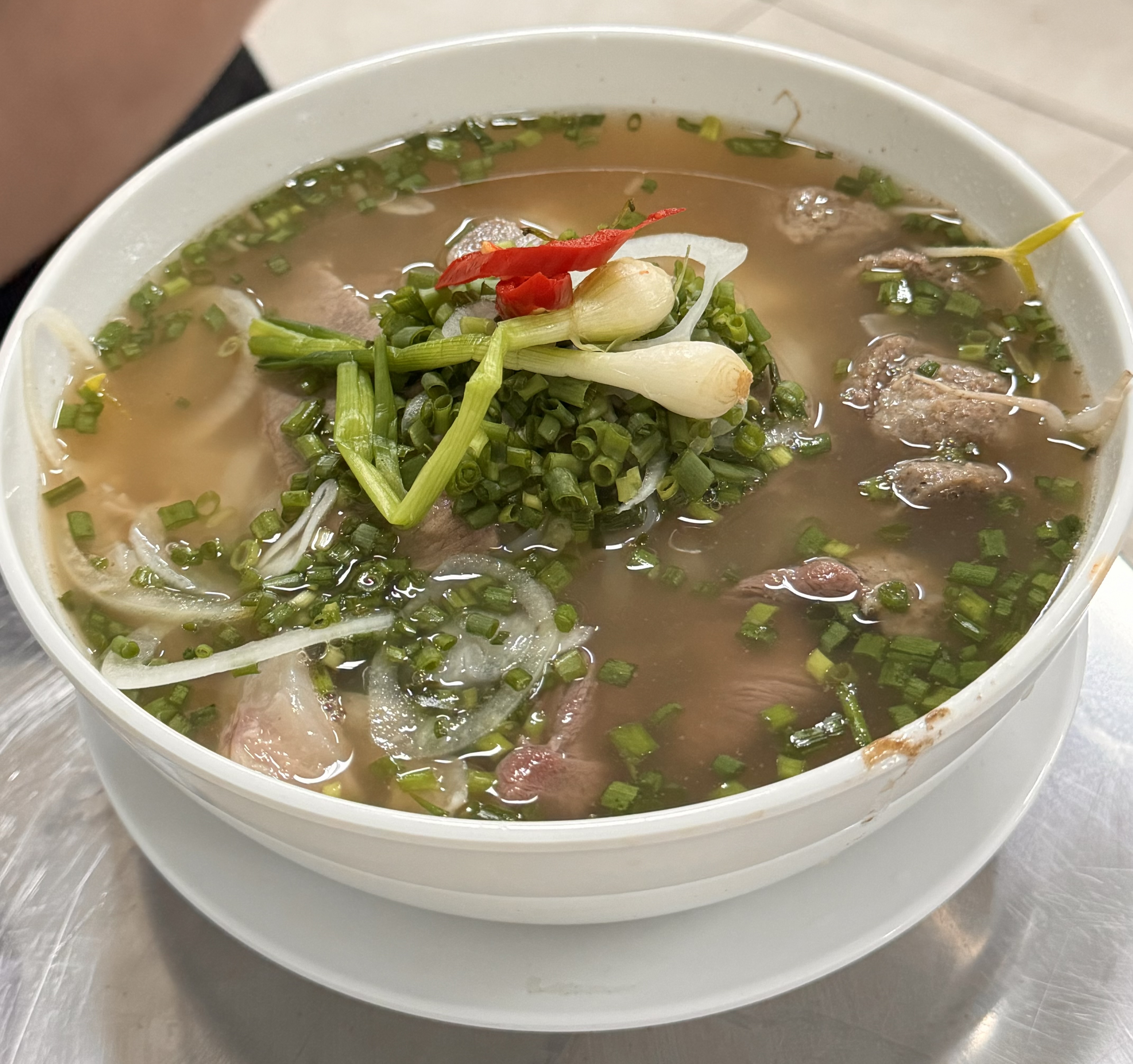 소고기도 넉넉하게 들어 있어서 든든했는데, 고기 특유의 잡내는 전혀 없고 국물 맛을 더 깊게 만들어주는 느낌이었어요. 얇게 썬 고기가 국물에 살짝 익어 부드럽게 넘어가는데, 이게 바로 베트남식 쌀국수의 매력 아닐까요?