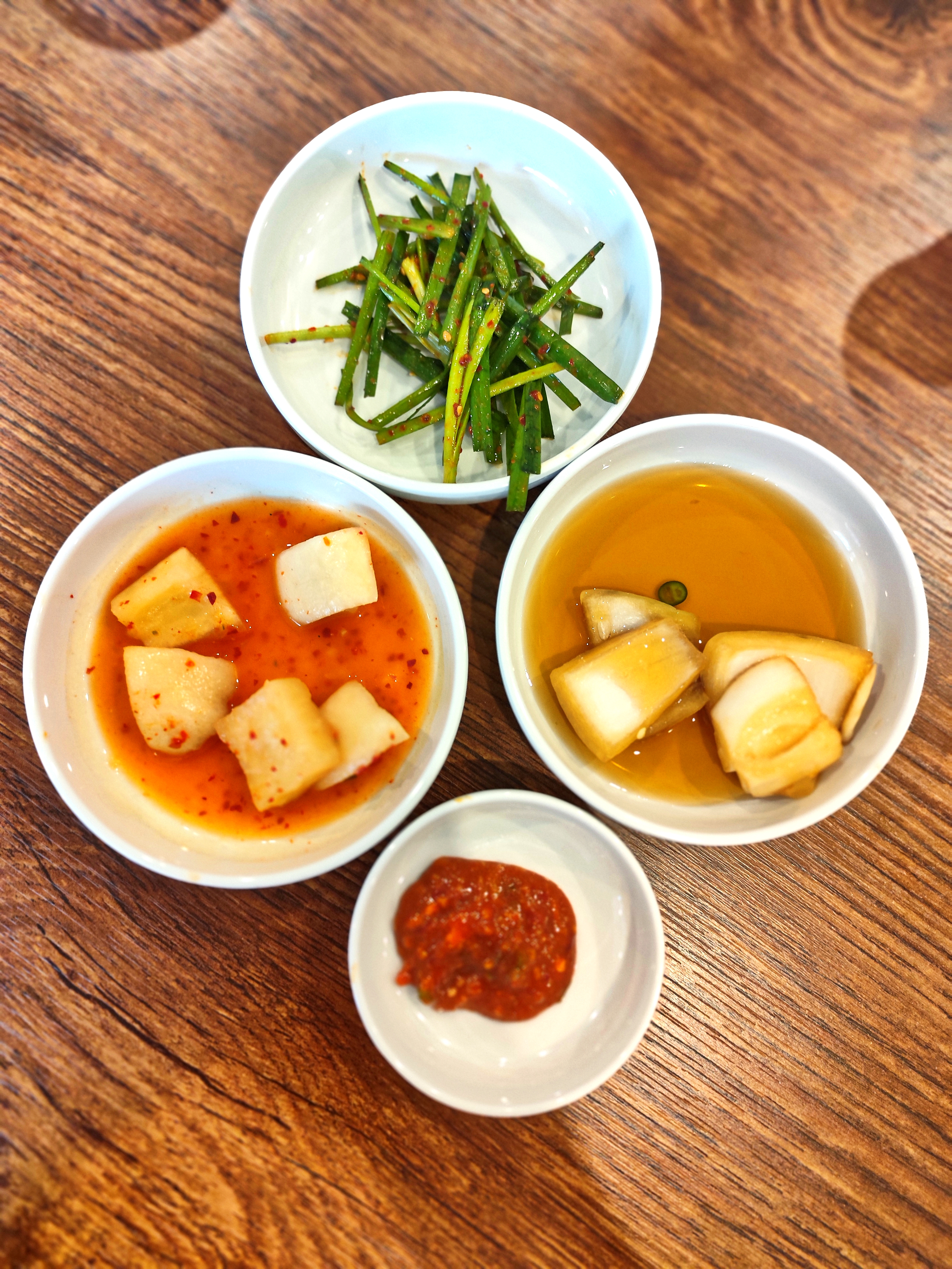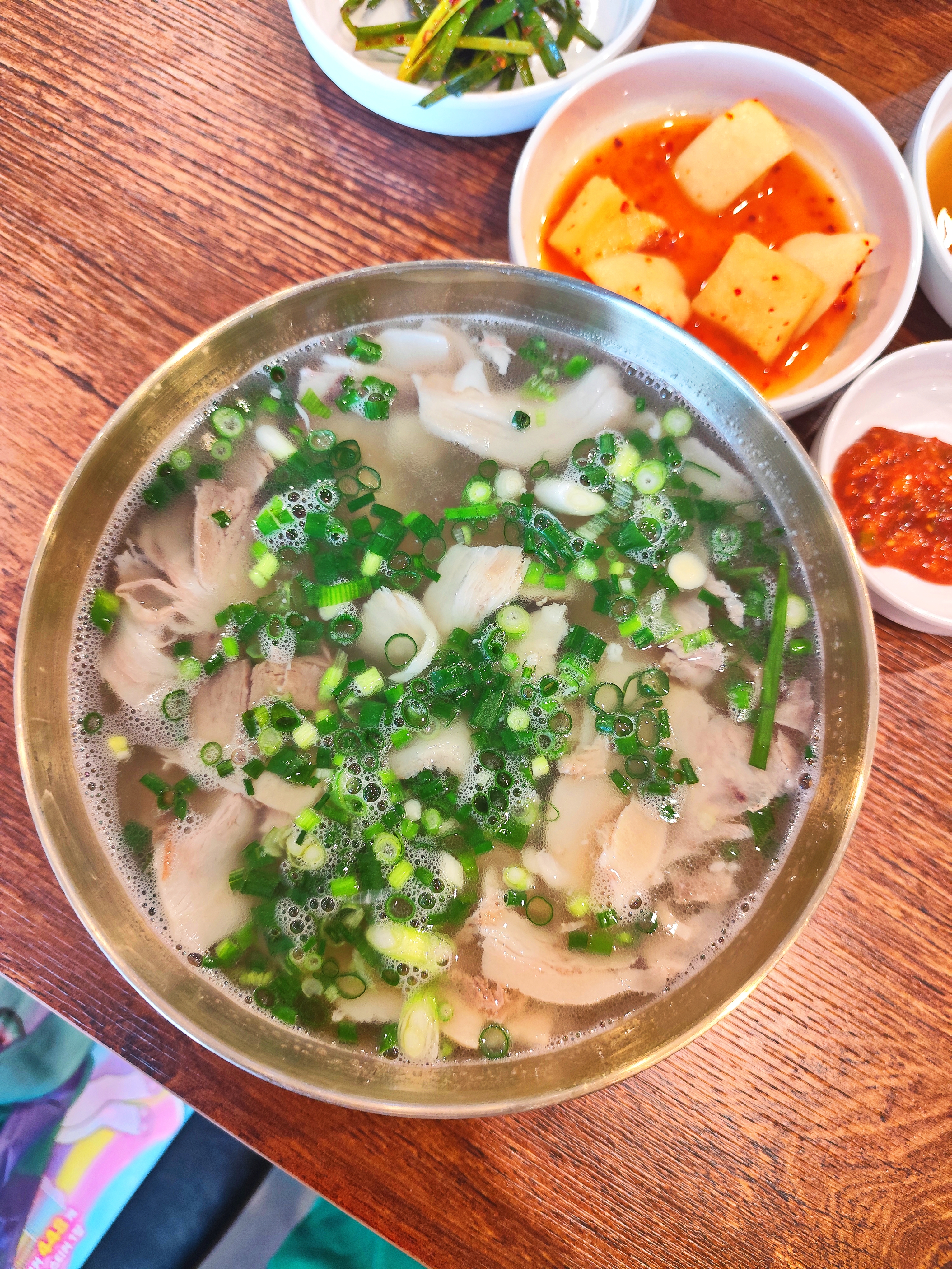 반찬으로 나오는 깍두기와 김치를 곁들이면 국물 맛이 한층 더 살아납니다.