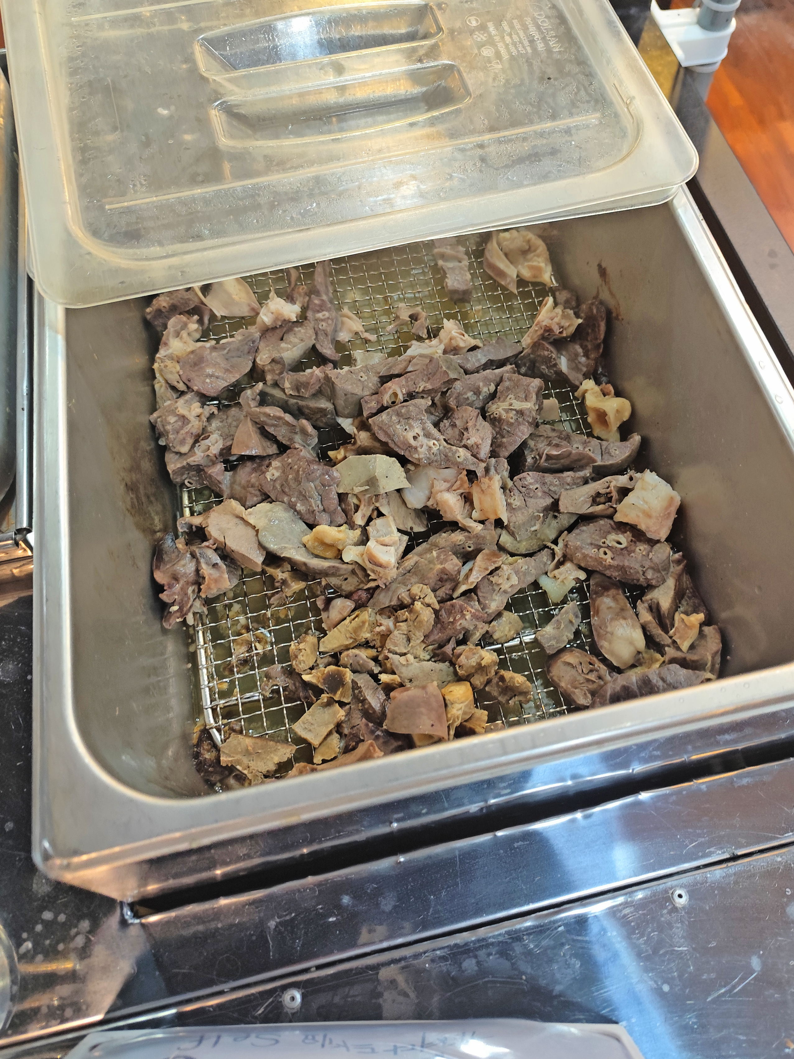 국수 사리와 내장, 육수는 셀프 리필 가능하기 때문에, 양을 더 원한다면 마음껏 추가해 먹을 수 있다는 점이 큰 장점입니다.