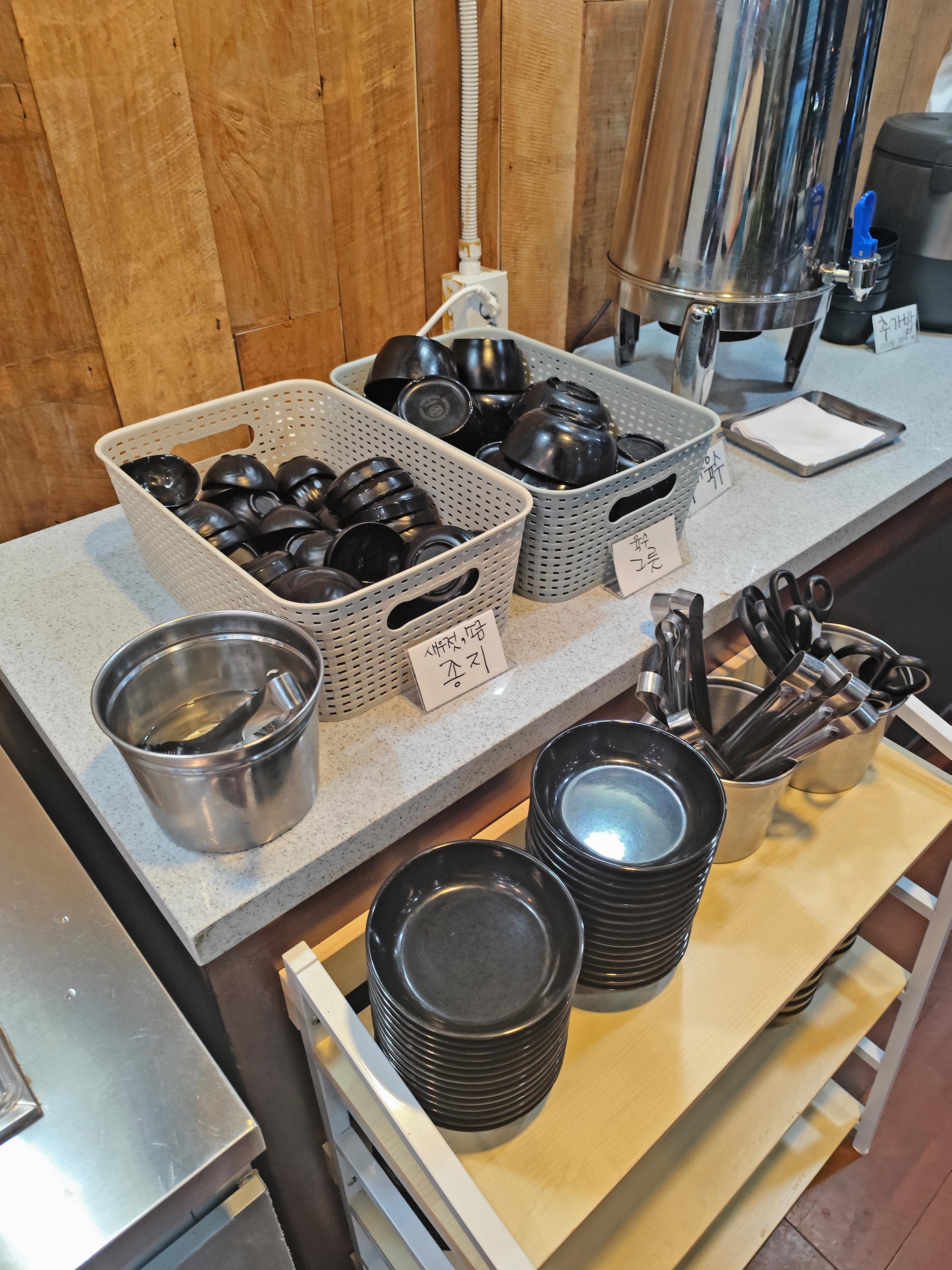 셀프 리필 바: 내장, 국수, 육수가 무한리필 → 메뉴와 상관없이 푸짐하게 즐길 수 있음.